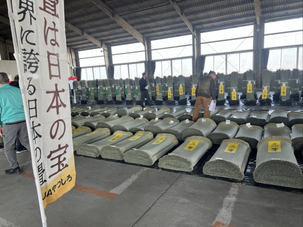 1月30日~2月13日、八代市で第51回熊本県い業大会が開催。県内各地から集まったイ草・畳表の出来を競う品評会で、特別賞受賞者の表彰が行われました。生産者の一年の努力が詰まった、熱気ある会場でした。